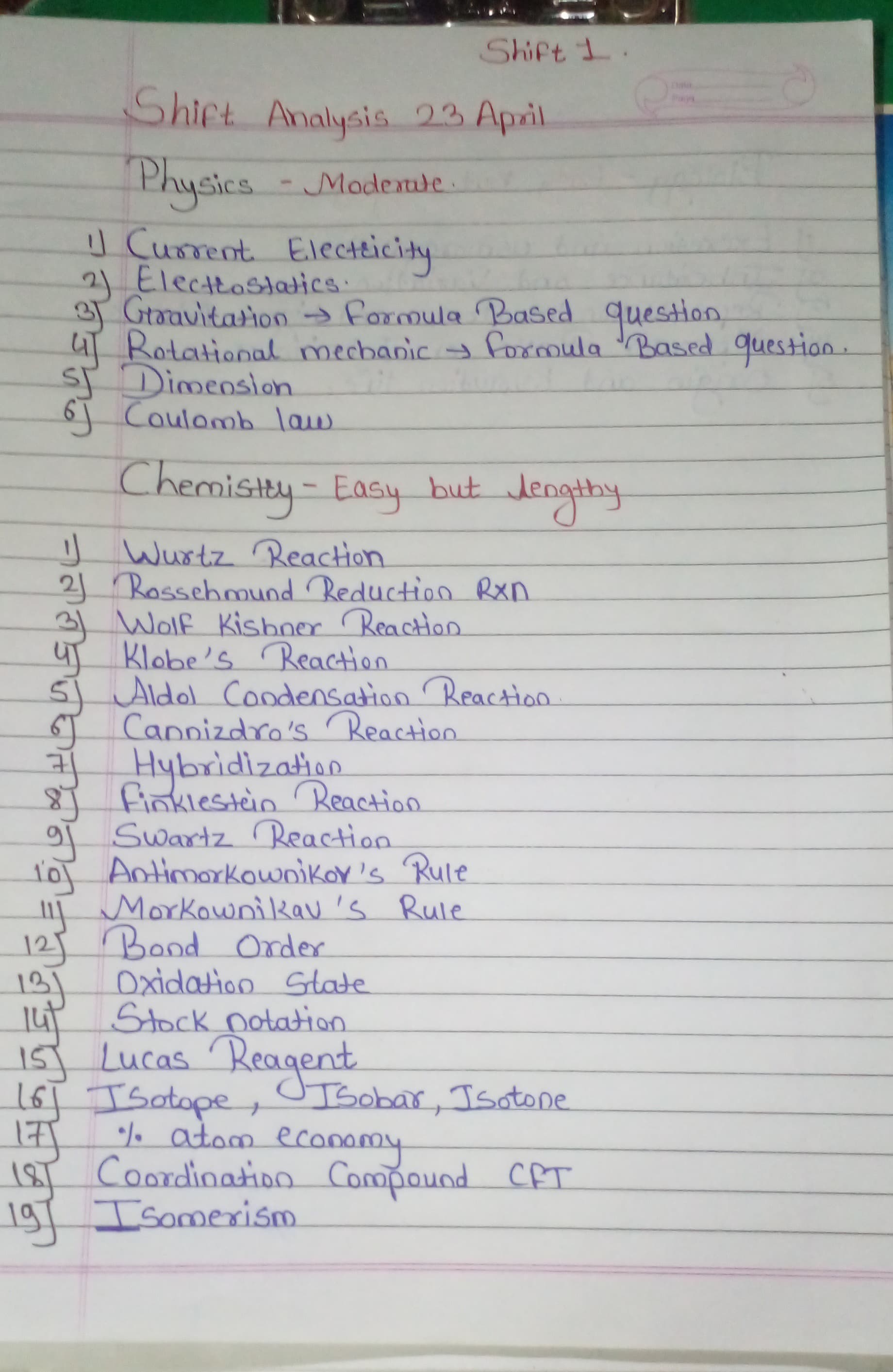22 April PCB Day-3 Remembered-Based Topics: